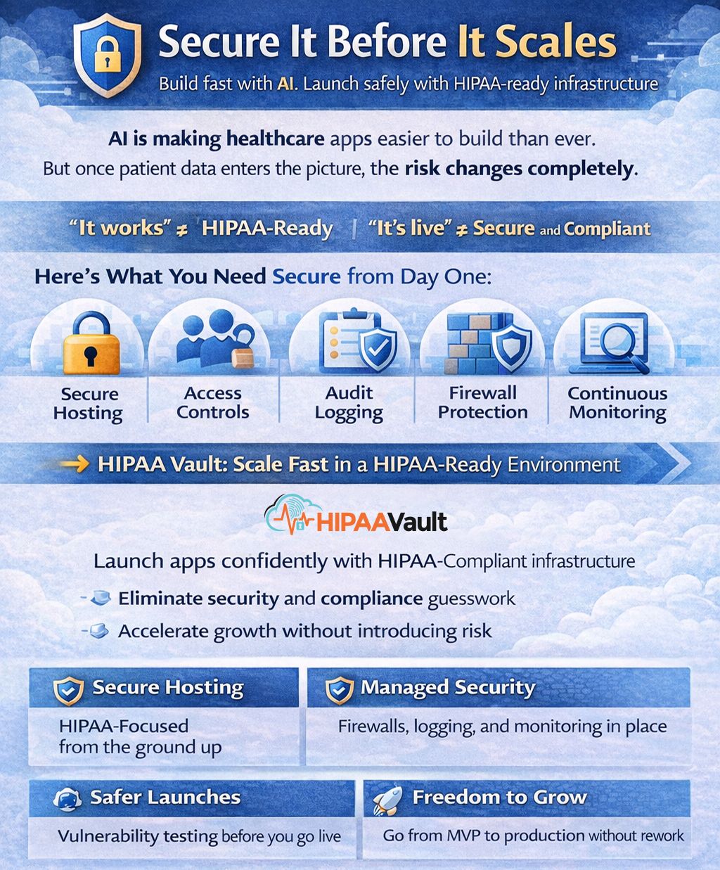 → Building with AI, launching fast, or testing your healthcare app? Make sure compliance isn’t an afterthought. Secure it before it scales.